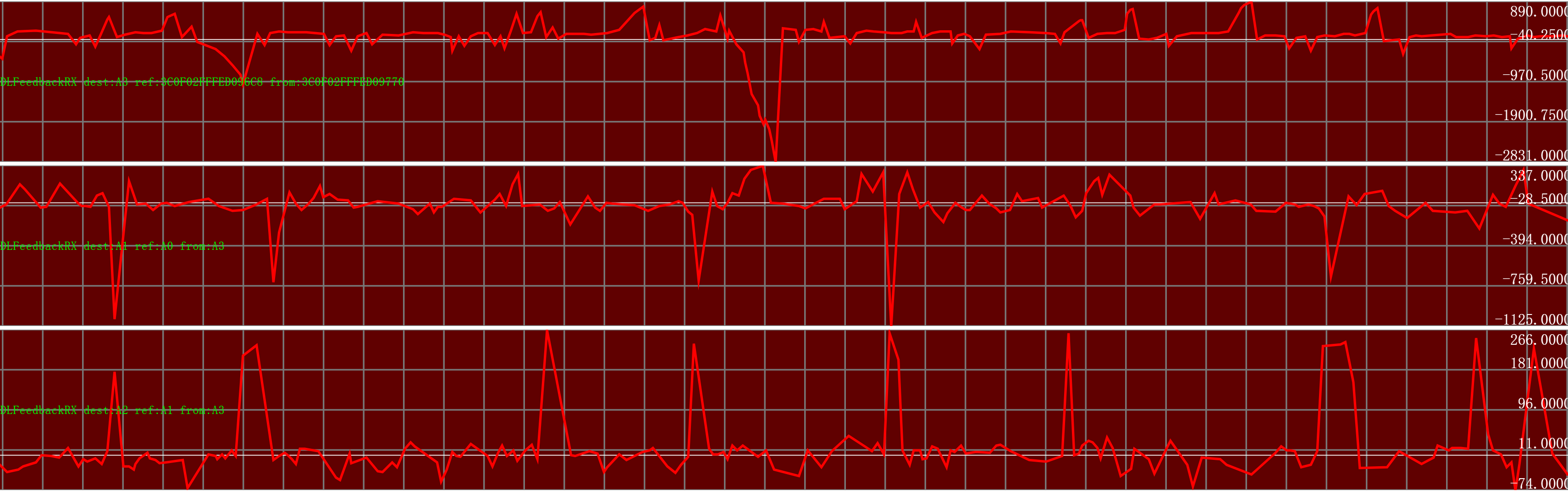 该页面加载到浏览器后,同样与消息汇聚程序建立 WebSocket 连接,但接收的是时钟同步相关 的诊断消息(如各 Anchor 的同步误差、factor 值变化、反馈量等),把时钟同步的状态以曲线方式实时显示。这使我们可以直观地看到: