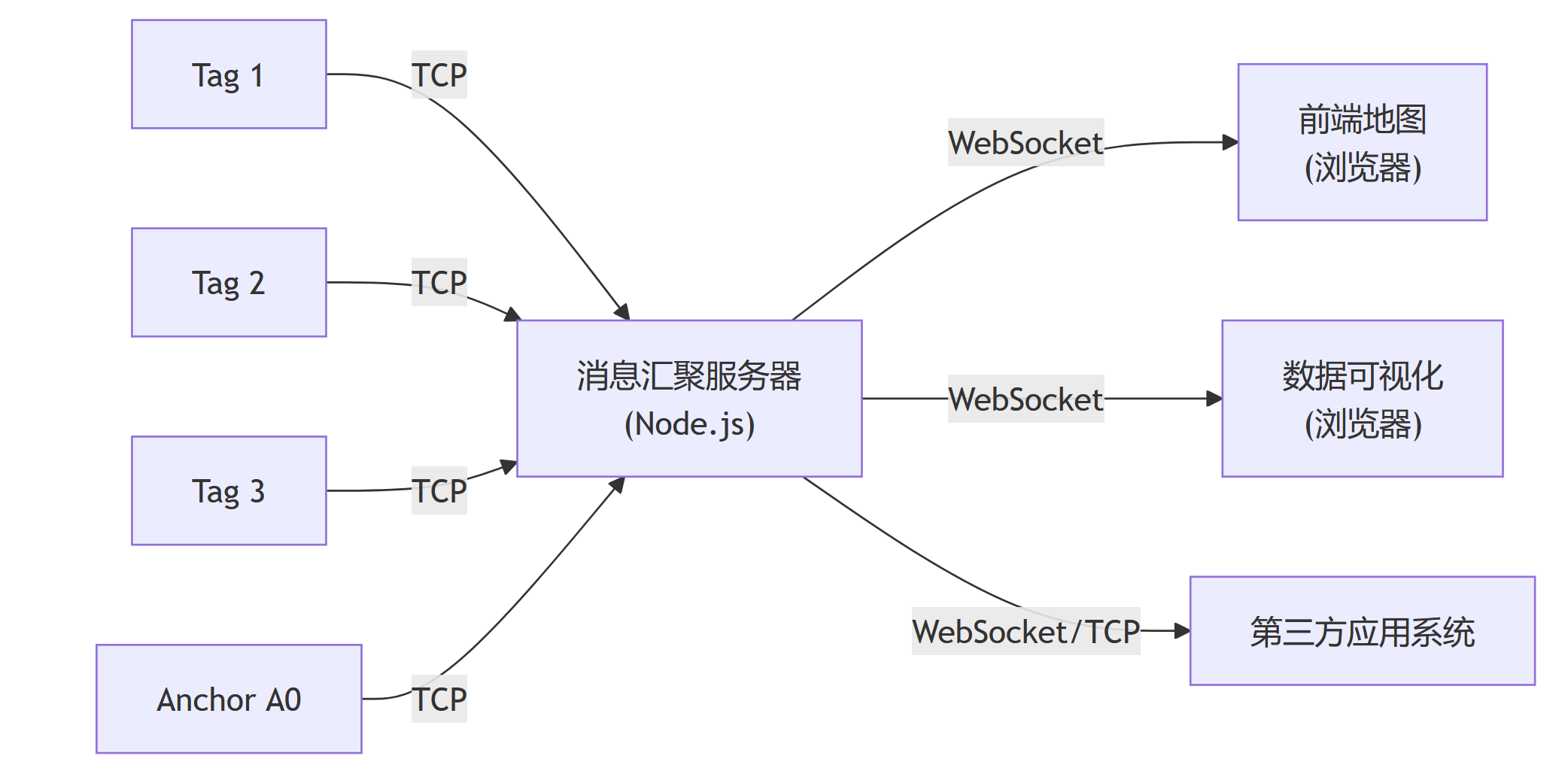 - 为方便应用系统的开发,可以写一个数据聚合的服务端程序,收集各个 Tag 发来的坐标信息,再统一与应用系统对接